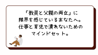 父親であることと、教員であること。二つの役割を背負いながら、毎日を過ごしていました。今振り返ると、あの頃の自分はかなり追い込まれていたと思います。父親として。3歳の長男と1歳の長女の子育て中でした。夜泣きの対応のこともあり、睡眠不足が続く日...