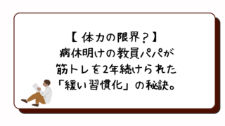 自己研鑽 【体力の限界?】病休明けの教員パパが筋トレを2年続けられた「緩い習慣化」の秘訣。