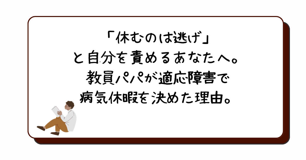 ・病休を取得することが家族を守ることに繋がる理由。 ・診断を受けた時のリアルな話。 ・教員の多忙さに限界を感じている人に伝えたいこと。