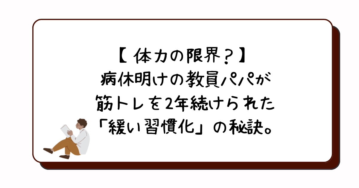 【体力の限界?】病休明けの教員パパが筋トレを2年続けられた「緩い習慣化」の秘訣。