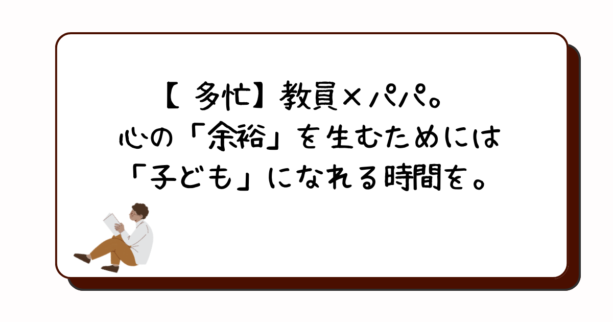 「教員」という責任感のある仕事以外の時間で、いかに「夢中になれる瞬間」を作るかです。