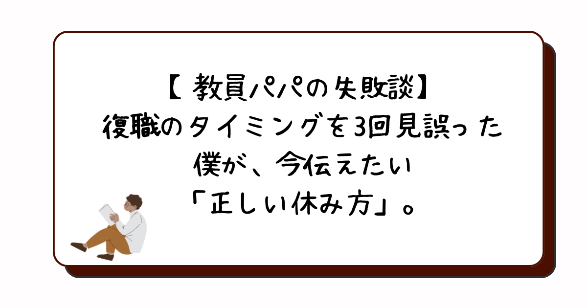 【教員パパの失敗談】復職のタイミングを3回見誤った僕が、今伝えたい「正しい休み方」。