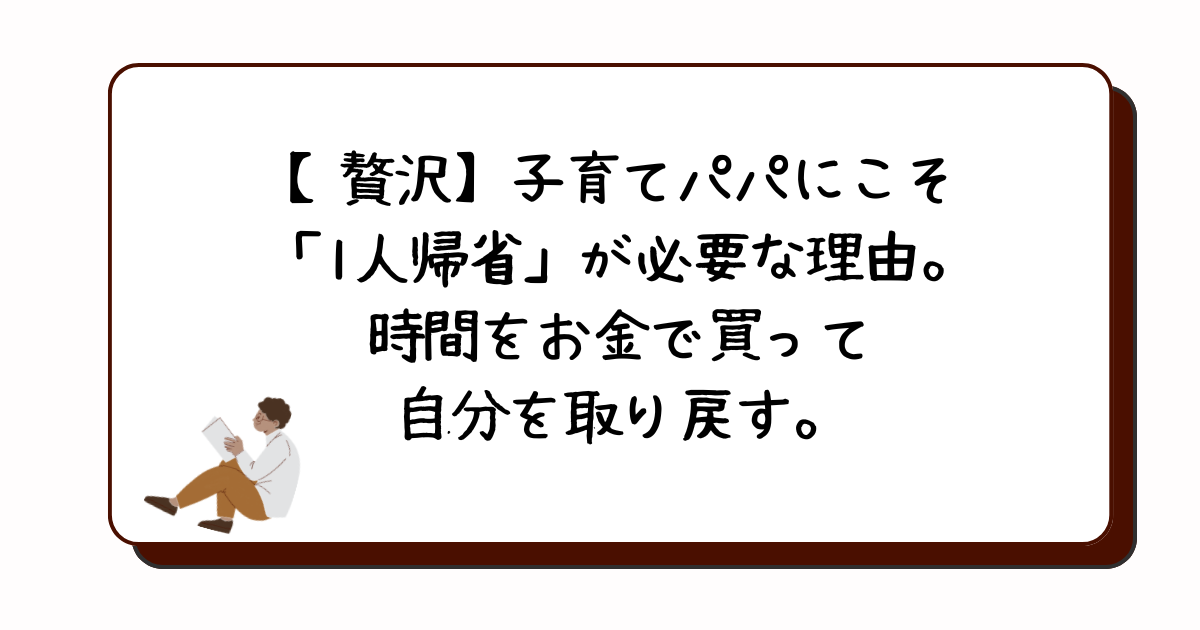【贅沢】子育てパパにこそ「一人帰省」が必要な理由。時間をお金で買って自分を取り戻す。