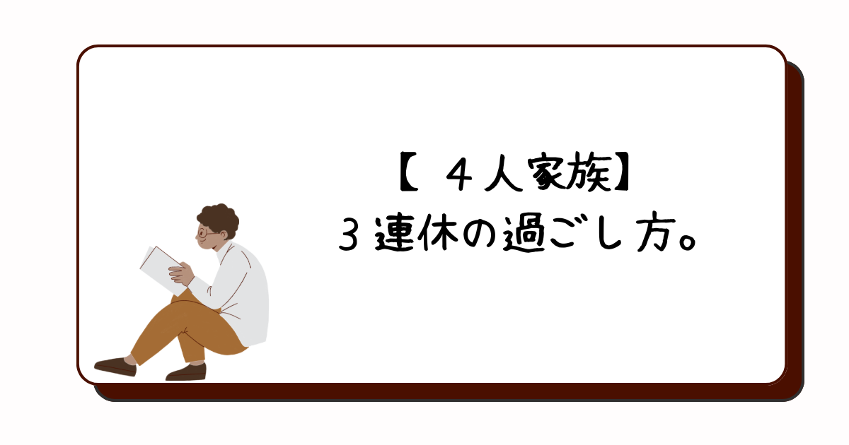 今回は、今回の我が家の3連休の過ごし方と、それについて思ったことを書いていきます。